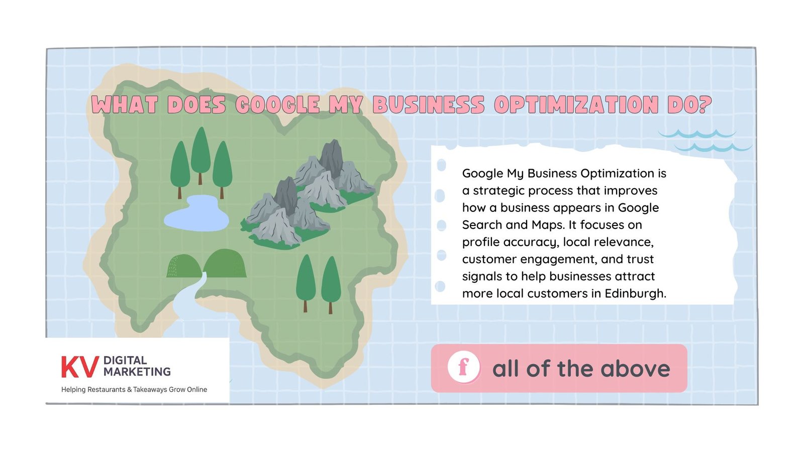 This guide will show you how KV Restaurant Marketing can help local businesses improve their GMB ranking and online presence in general by using advanced local techniques by SEO Agency Edinburgh, well-organized content, and regular updates.